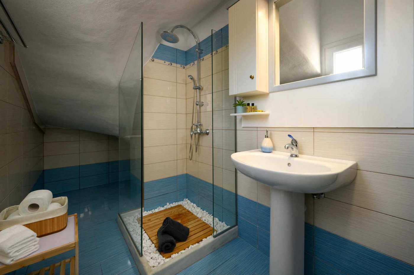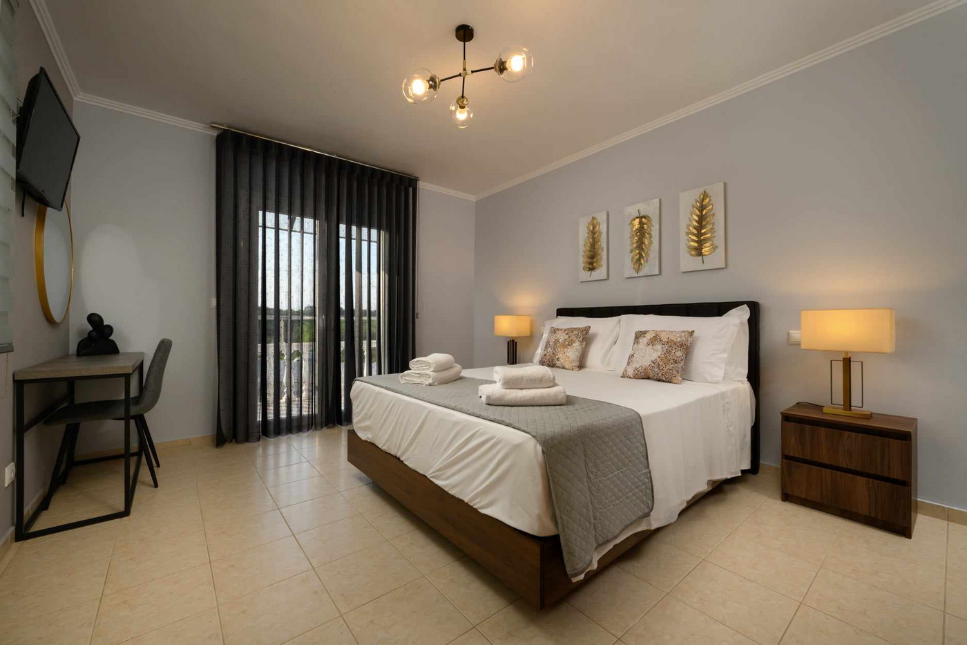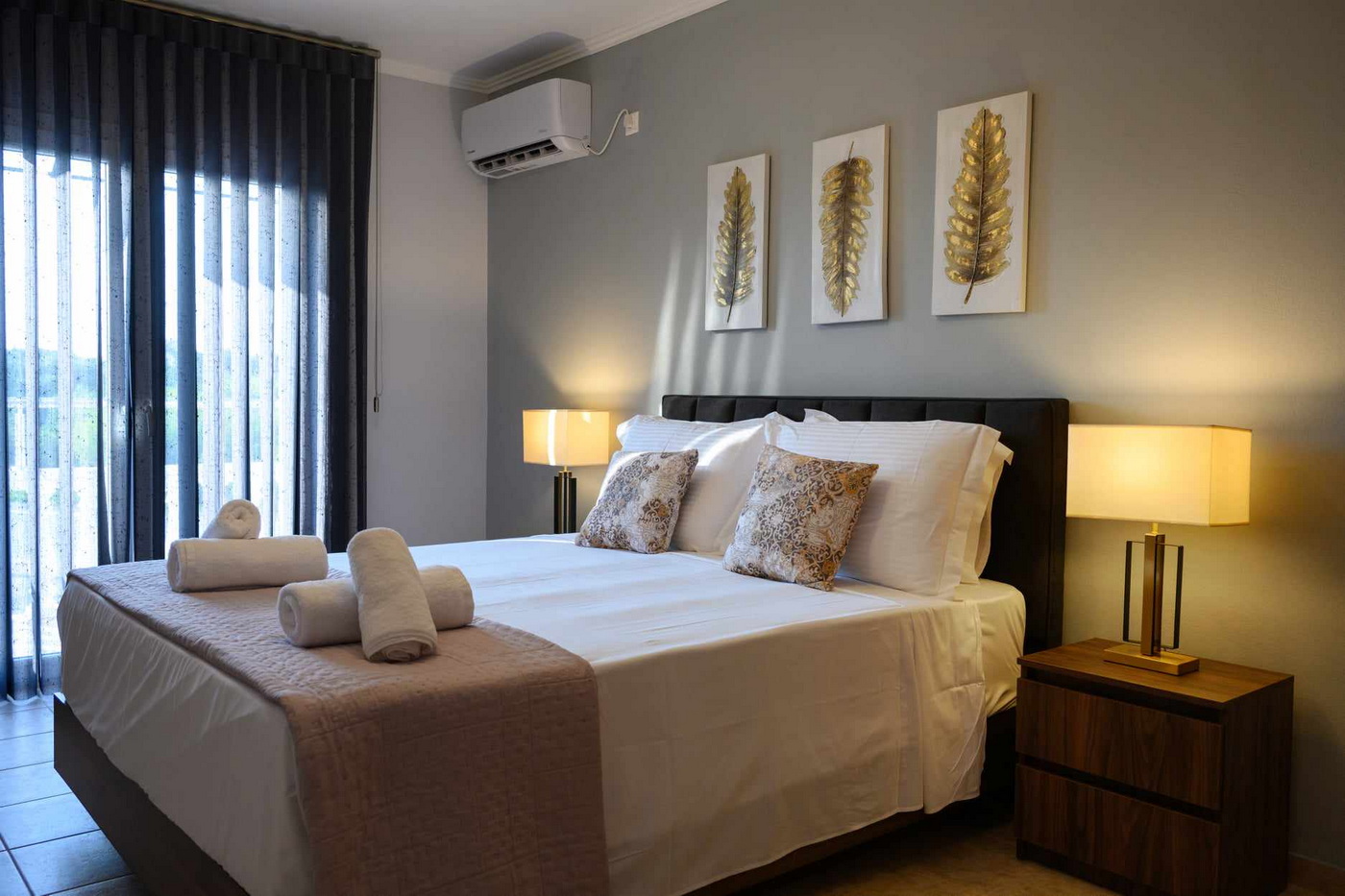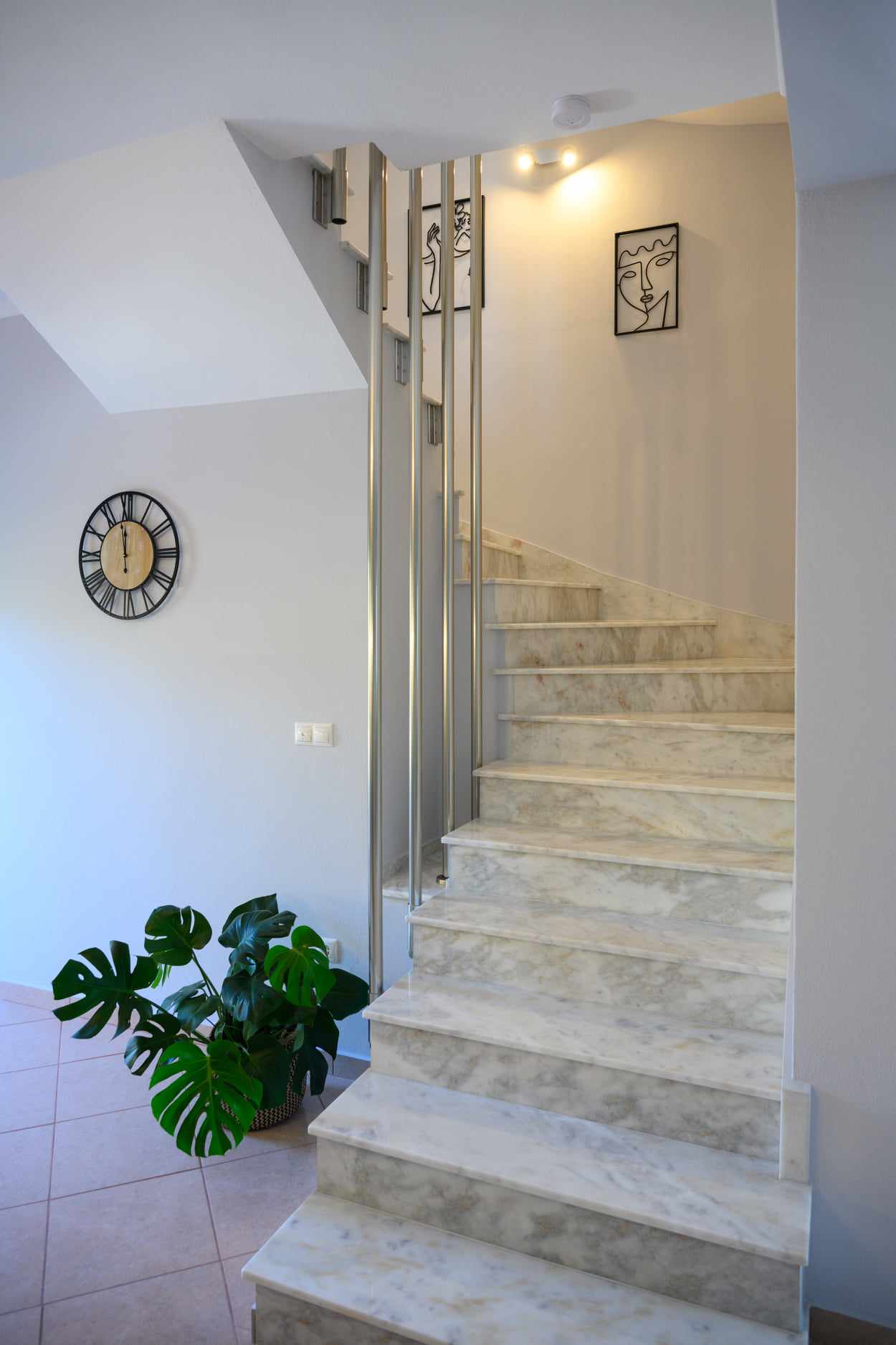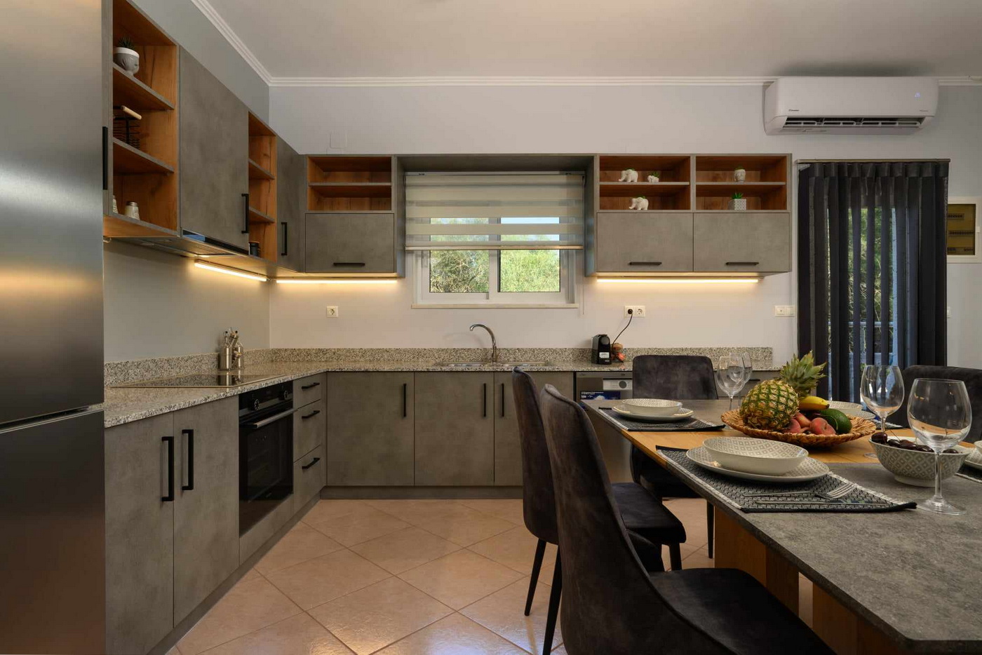 Nestled amid lush greenery, Villa Alina offers a secluded haven for travelers seeking the perfect blend of luxury and tranquility. As you step into our elegantly designed apartment, you’ll be greeted by a spacious and airy interior, adorned with modern amenities and tasteful furnishings. The air-conditioned apartment consists of 3 bedrooms, a seating area, a fully equipped kitchen, and 2 bathrooms, one with a walk-in shower and one with a bathtub. In the kitchen, guests will find a refrigerator, an oven and stovetop, a microwave, a dishwasher, as well as a coffee machine and a kettle. Every bedroom is fitted with air-conditioning and a flat-screen TV, slippers, bed linen, and towels.